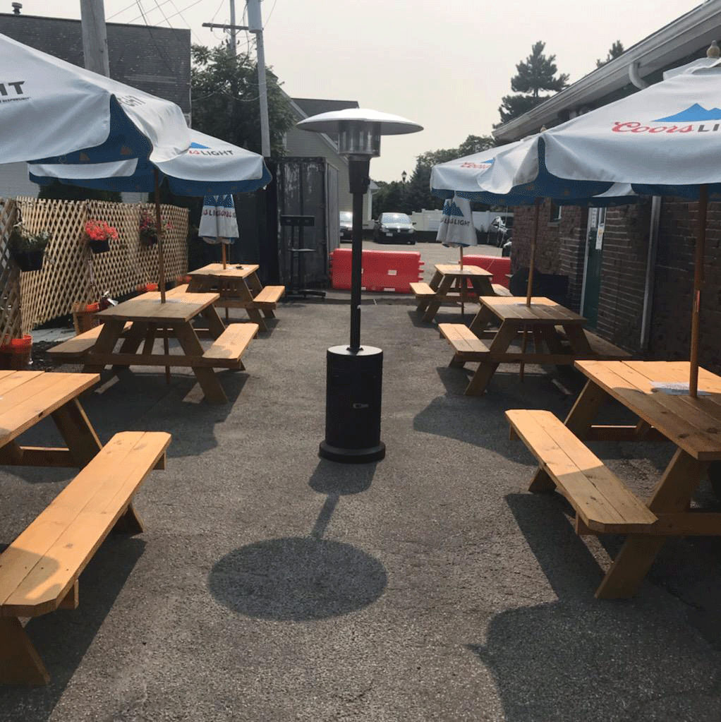 Enjoy the fresh air with friends at our new outdoor seasonal patio. Sporting a large screen TV so you won't miss those game winning plays. Pull up a seat and enjoy your night.