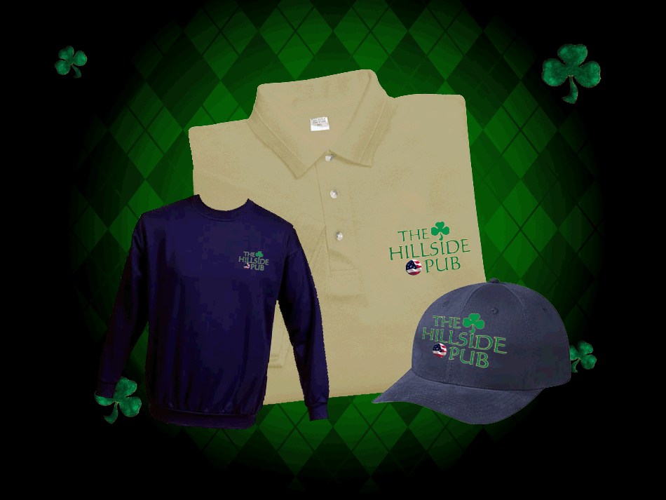 The Hillside Pub offers assorted season apparel from Summer Golf Shirts, Winter Sweatshirts to Caps all emblazoned with the Pub's friendly Logo.